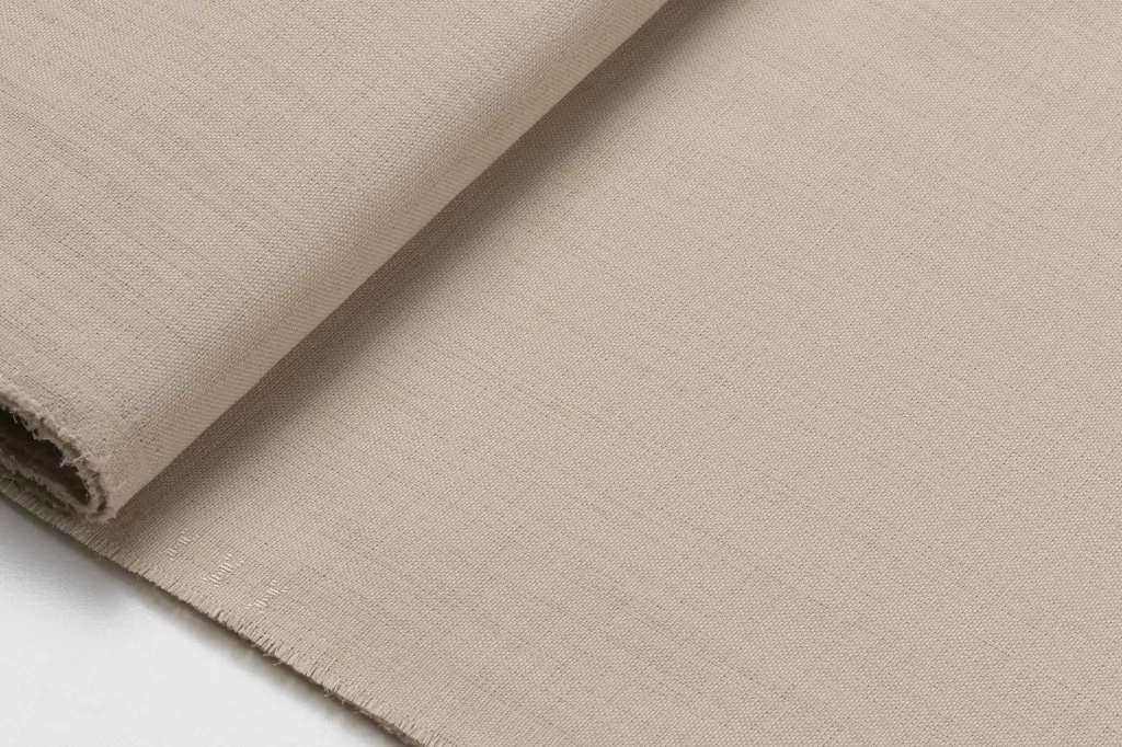 Keten görünümlü dokuma yapısına sahiptir; yüzeyi hafif dokulu, mat ve şık bir görünümdedir.