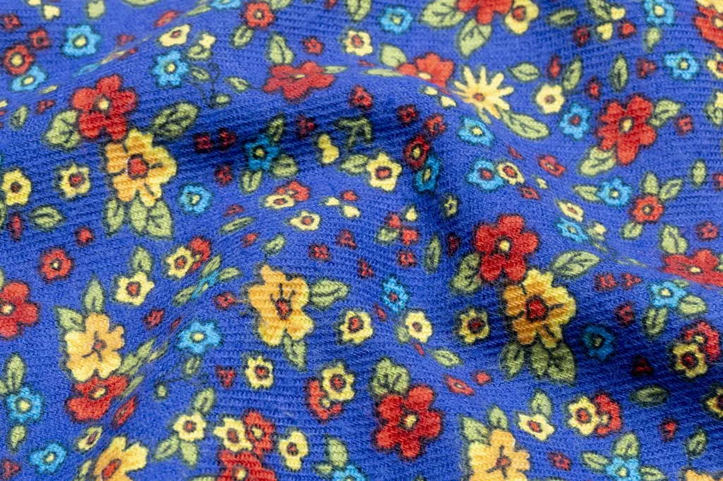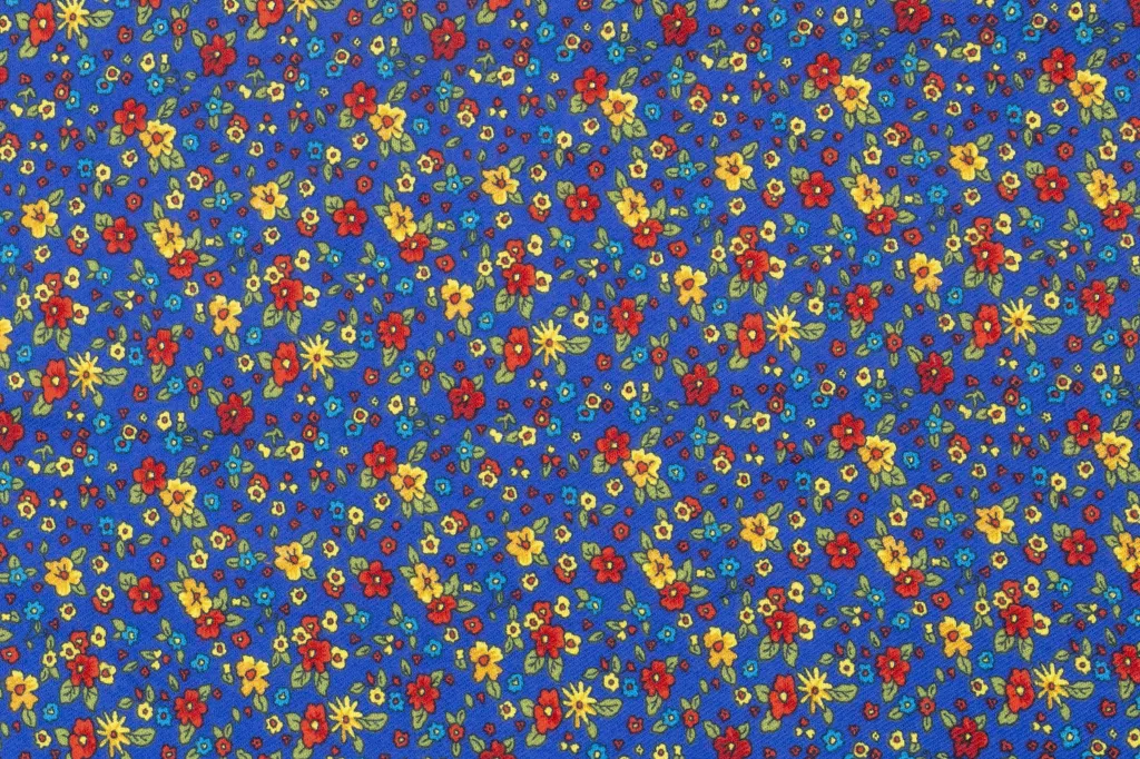 Mavi Çiçek Desenli Pazen Kumaş