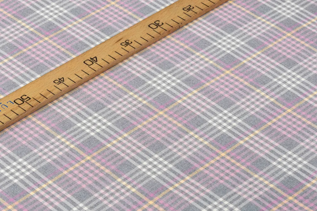 • Ekose gabardin, (diğer bilinen adıyla Scotch kumaş) sık dokunmuş dimi örgü yapısıyla dayanıklı, tok duruşlu ve form tutan bir kumaştır. 150 cm eninde üretilen bu kumaş, kareli ekose deseni sayesinde hem klasik hem de günlük tasarımlarda tercih edilir. Orta kalınlığıyla mevsim geçişlerinde rahat kullanım sunar ve uzun ömürlüdür.