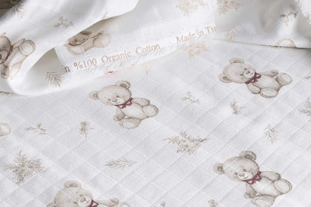 Bebek müslin kumaş, ince dokusu ve nefes alabilen yapısıyla bebek tekstilinde en çok tercih edilen kumaş türlerinden biridir. Yumuşak ve hafif yapısı sayesinde bebeğin cildiyle nazik bir temas sağlar, konforlu bir kullanım sunar. Hava geçirgenliği yüksek olduğu için terletmez ve özellikle sıcak havalarda rahatlıkla kullanılabilir.