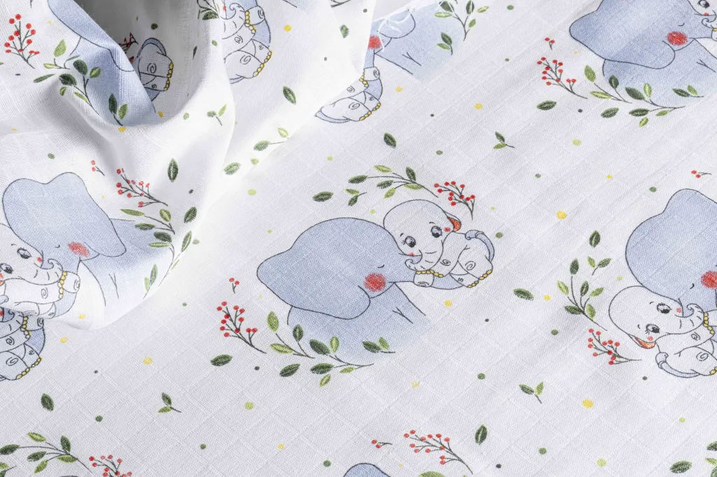 Tek Kat Mavi Fil Desenli Müslin