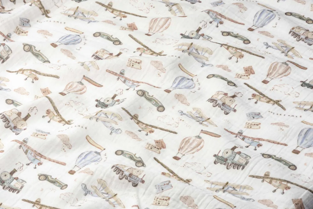 Uçak ve Araba Desenli Bebek Müslin