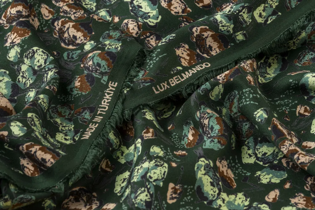 Yeşil orman yaprakları kaşmir viskon kumaş, doğanın canlı enerjisini yansıtan zarif desenleriyle öne çıkar. Kaşmirin yumuşak dokusu ile viskonun hafif ve dökümlü yapısını bir araya getirerek hem konforlu hem de estetik bir kullanım sunar. Nefes alabilen özelliği sayesinde sıcak havalarda serinlik, serin günlerde ise ideal bir rahatlık sağlar. Akışkan formu, özellikle elbise, bluz, tunik, etek ve şal gibi kadın giyim ürünlerinde şıklığı öne çıkarırken, tasarımlara doğal bir zarafet katar. Canlı yeşil yaprak desenleri, modern tasarımlarda doğadan gelen tazelik hissini yaşatır. Dayanıklı yapısı ile uzun ömürlü kullanım imkânı sunan bu kumaş, hem günlük kullanım hem de özel tasarımlar için ideal bir tercihtir.