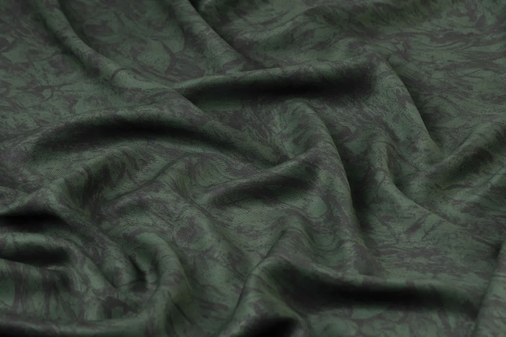 Zümrüt dumanı desenli kaşmir viskon kumaş, derin zümrüt yeşili tonlarının sisli ve dumanlı efektlerle birleştiği sofistike bir görünüme sahiptir. Kaşmirin yumuşak ve konforlu dokusu ile viskonun hafif ve akışkan yapısı bir araya gelerek, hem günlük kullanımda hem de özel tasarımlarda şıklığı ön plana çıkarır. Nefes alabilen yapısı sayesinde dört mevsim rahatlık sunarken, dökümlü formu özellikle elbise, bluz, tunik, etek ve şal gibi tasarımlarda zarif bir akış sağlar. Modern ve estetik desenleriyle zamansız bir şıklık sunan bu kumaş, dayanıklılığı ile uzun ömürlü kullanım imkânı tanır.